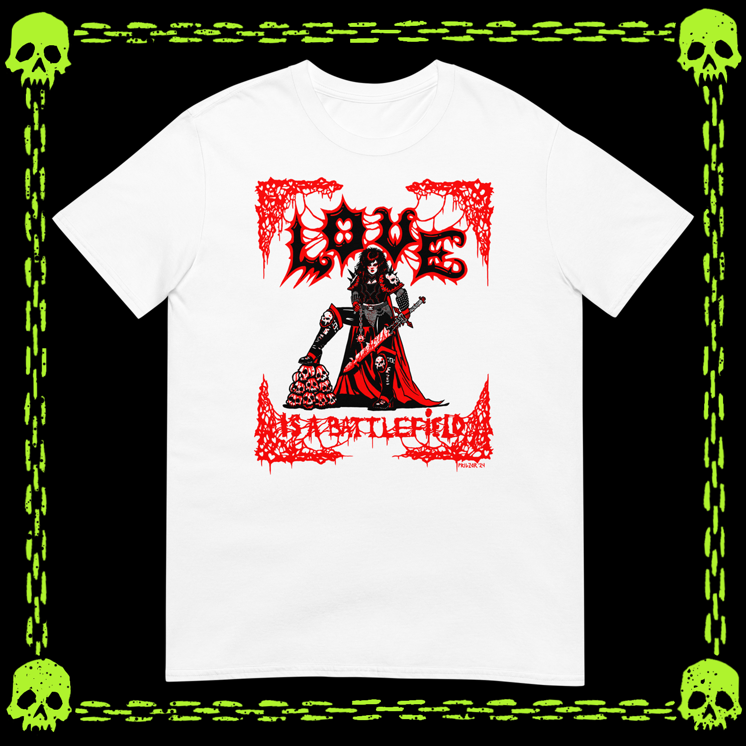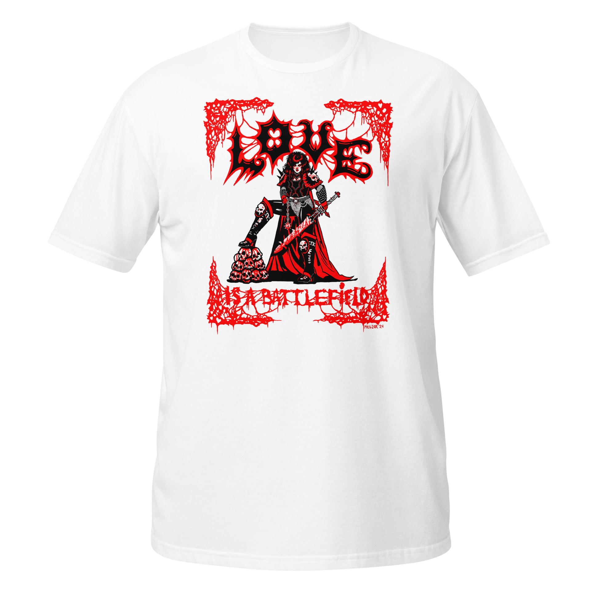 Love is a Battlefield T-Shirt on printed on Gildan Softstyle. Art by Prilzor. 100% ring-spun cotton.