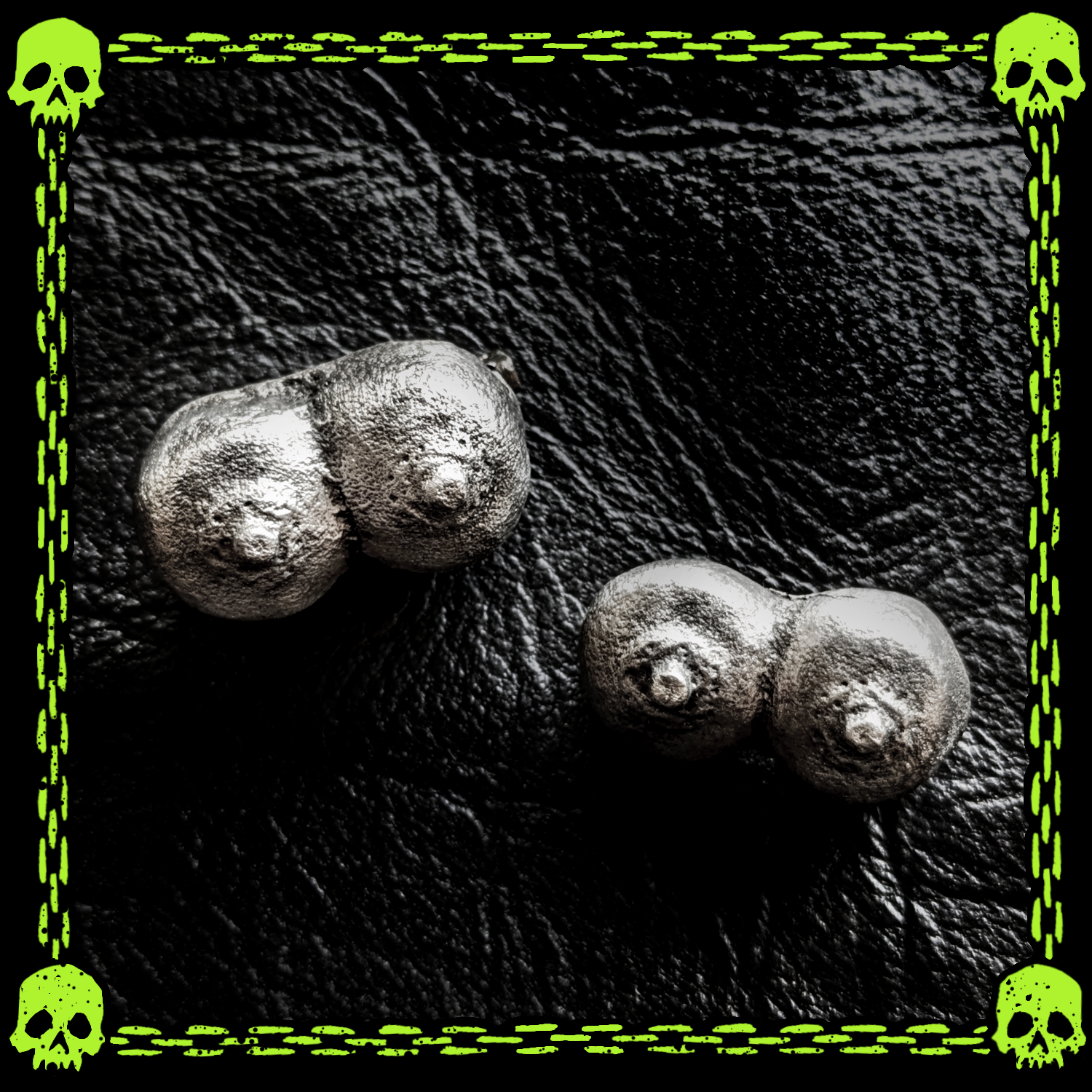 Tough-titties heavy metal lapel pin. Sculpted original design by Prilzor, hand cast in pewter. This is a handmade item, each one may differ slightly from this image.